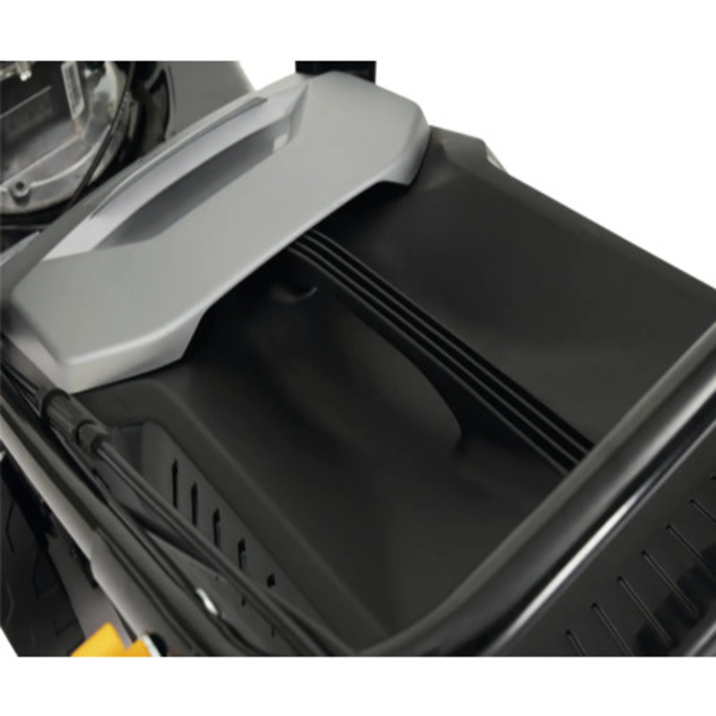 Le guidon pliable permet de réduire l’encombrement une fois la tondeuse rangée. Cela convient parfaitement aux utilisateurs ayant peu d’espace dans leur garage ou abri de jardin.