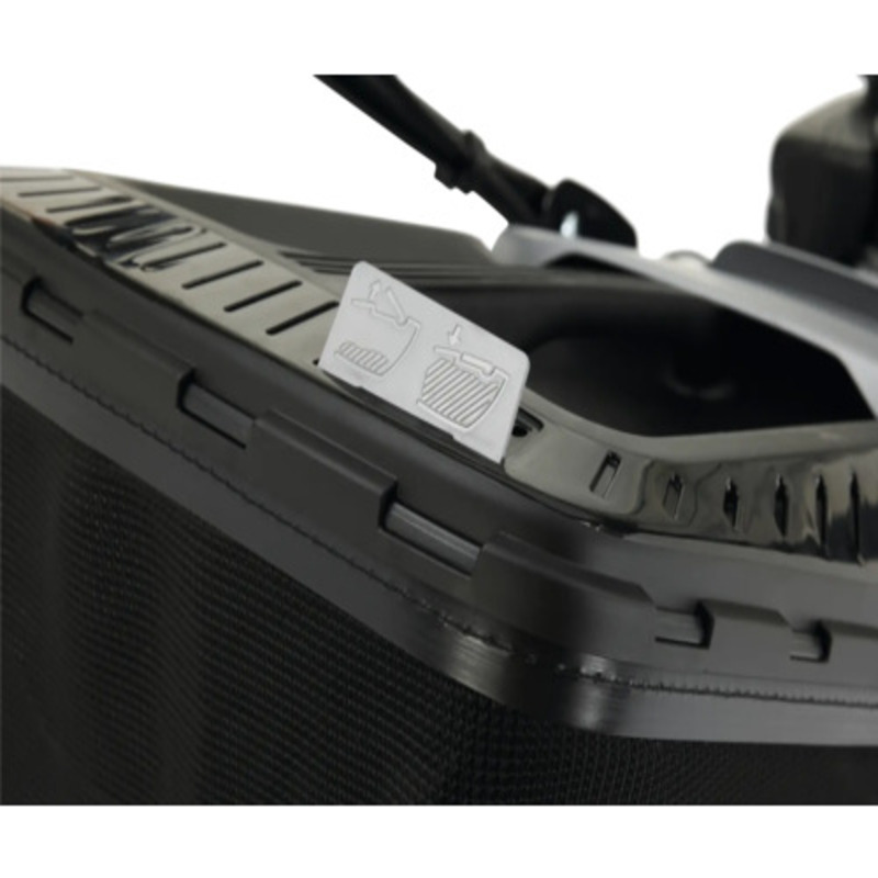 Équipée d’un grand bac de ramassage de 60 litres, cette tondeuse thermique limite les allers-retours pour vider l’herbe coupée. Le bac est rigide, solide et simple à retirer.